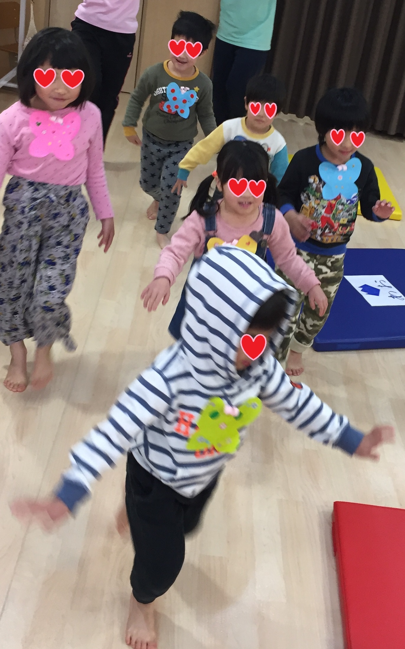 今回のちびっこコース、テーマは春らしく「ちょうちょになってあそぼう」でした。