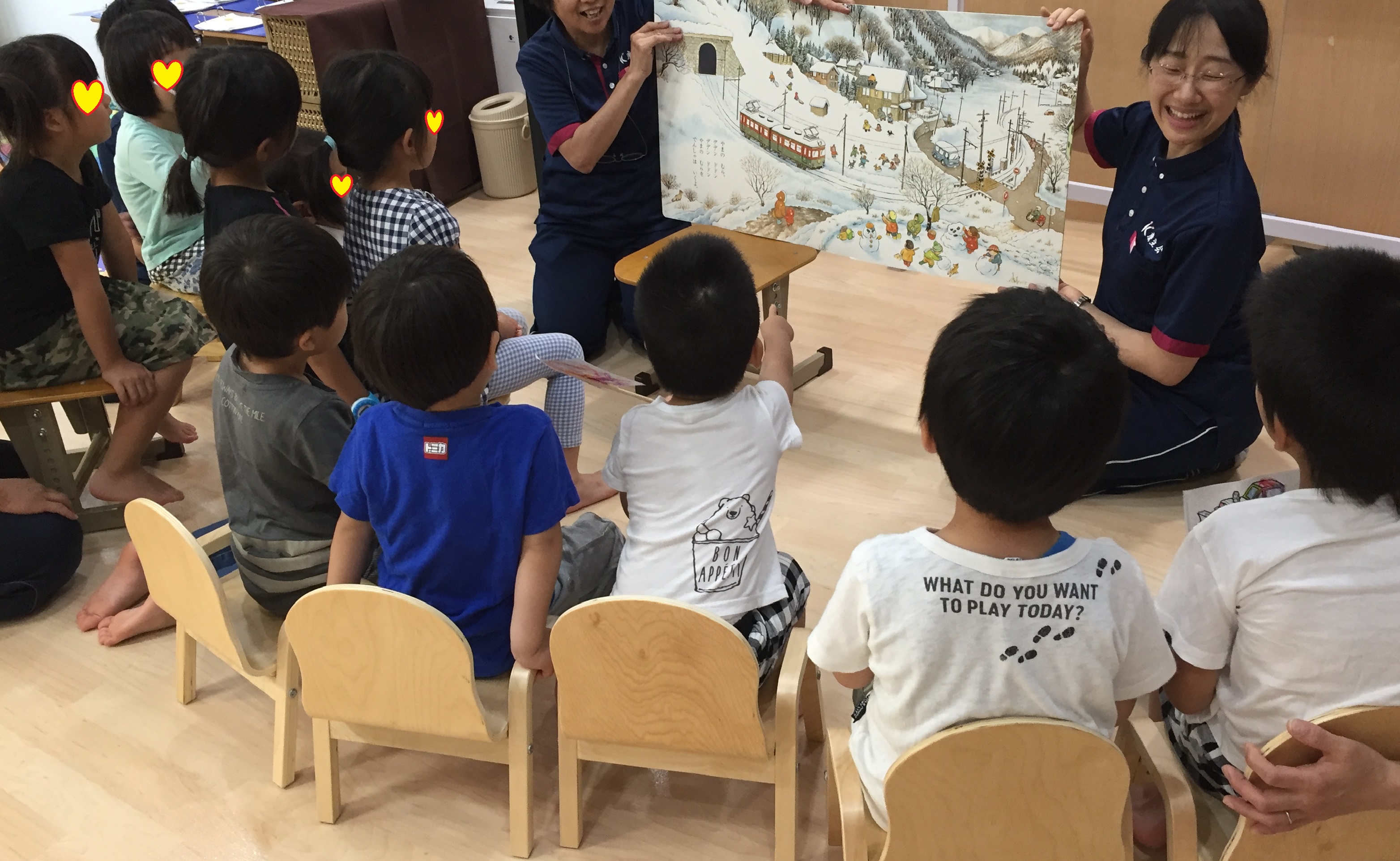 歌を知っている子も知らない子も、車が出てくると目をキラキラしながら見ていました。