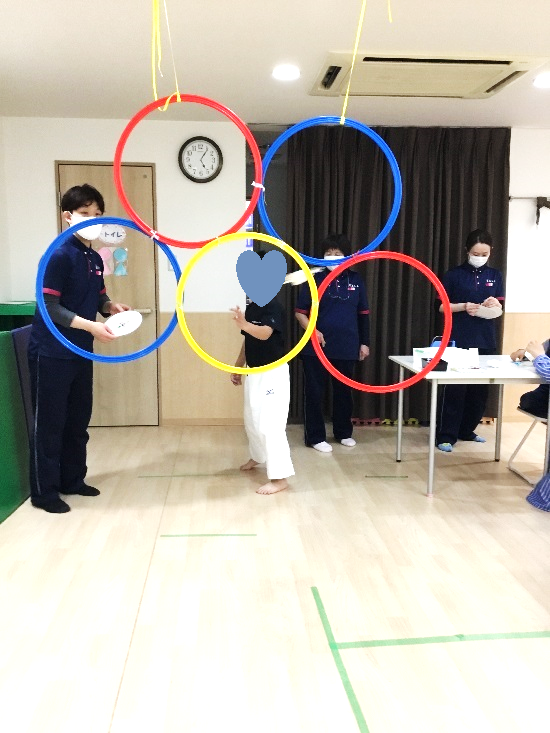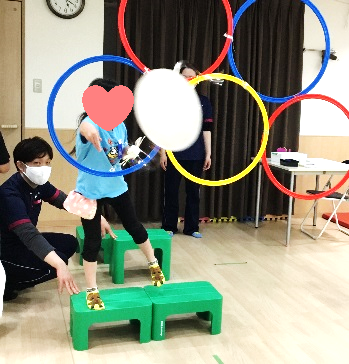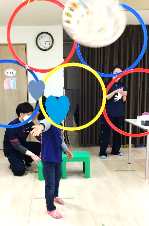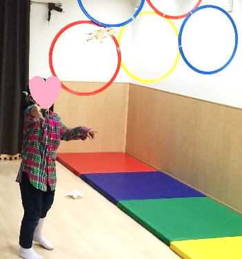 最初は上手く輪の中を通らなかった子どもたちも、何度も挑戦している内に、輪の中を通るようになってきました。