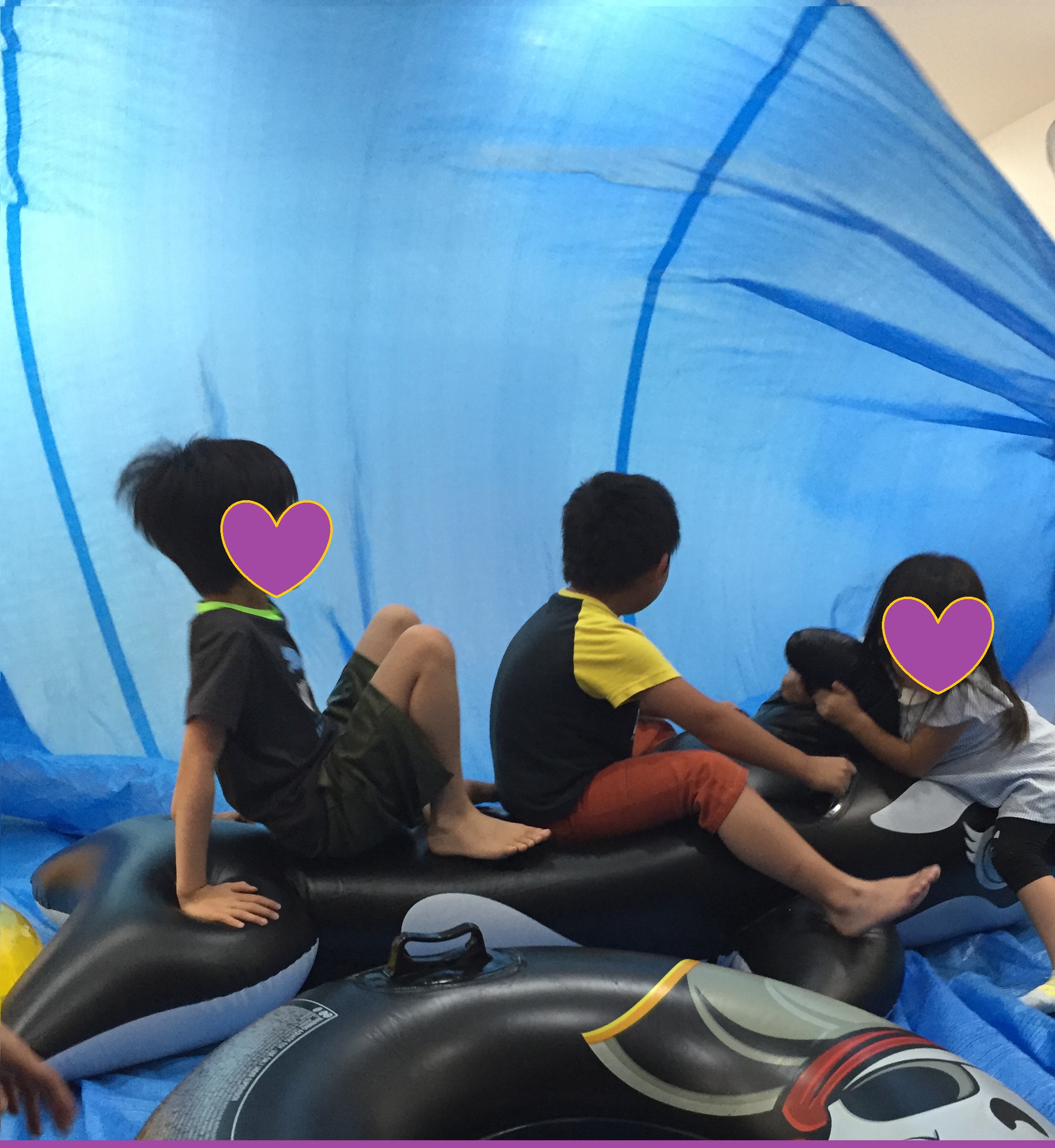 最後に、大きなシャチや浮き輪でも遊びました。みんなで交代で使ったり、大きなシャチにはみんなでバランスをとりながら乗ったりして、楽しかったですね!