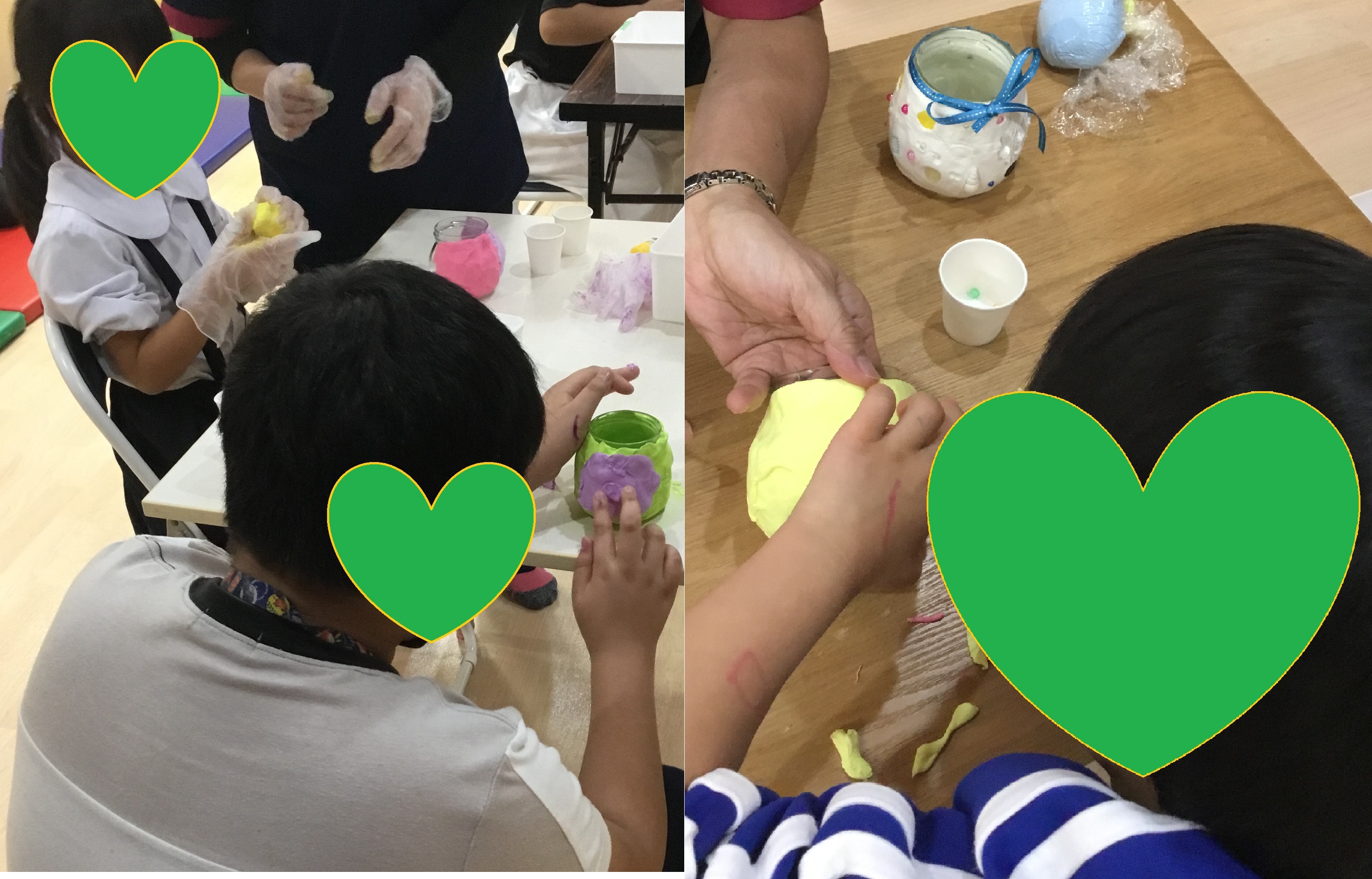ピンクを作ったお友達は、黄緑も合わせて好きな