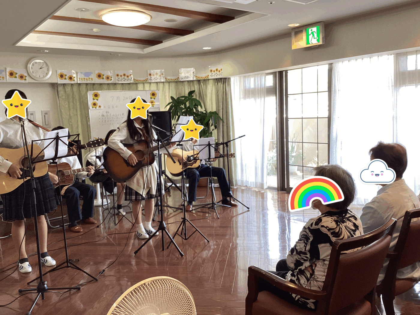 皆様こんにちは! シニアホーム飯盛ブログ担当です☆彡 先日、シニアホーム飯盛に 四條畷学園高校ギター部の皆さんにお越しいただき、 演奏会が開催されました!!! 目の前での迫力満点の演奏と高校生の元気な歌声に皆様釘付け!(^^)! 演奏後は学生の皆さん... -