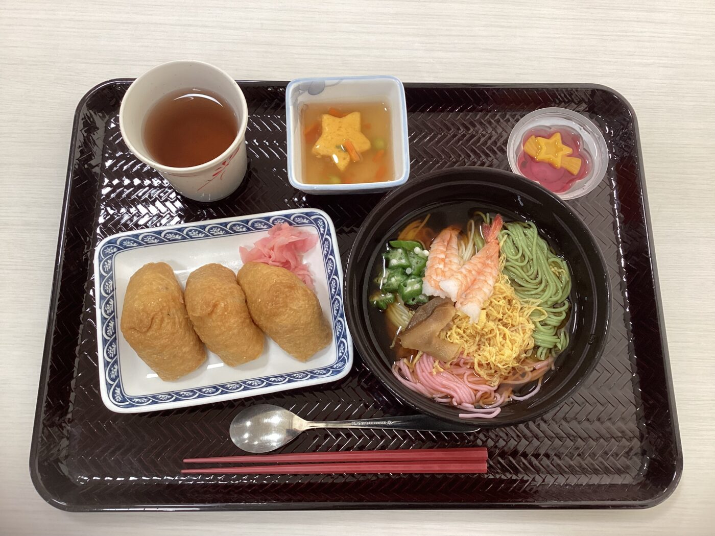 こんにちは!管理栄養士です! 7月7日の昼食は、七夕の特別メニューを提供しました! ~おしながき~☆稲荷寿司 ☆七夕素麺 ☆しんじょの銀あんかけ ☆七夕デザート 天の川をイメージした素麺は、彩り豊かな具材をトッピング。三色の素麺を使い、涼しさを感... -