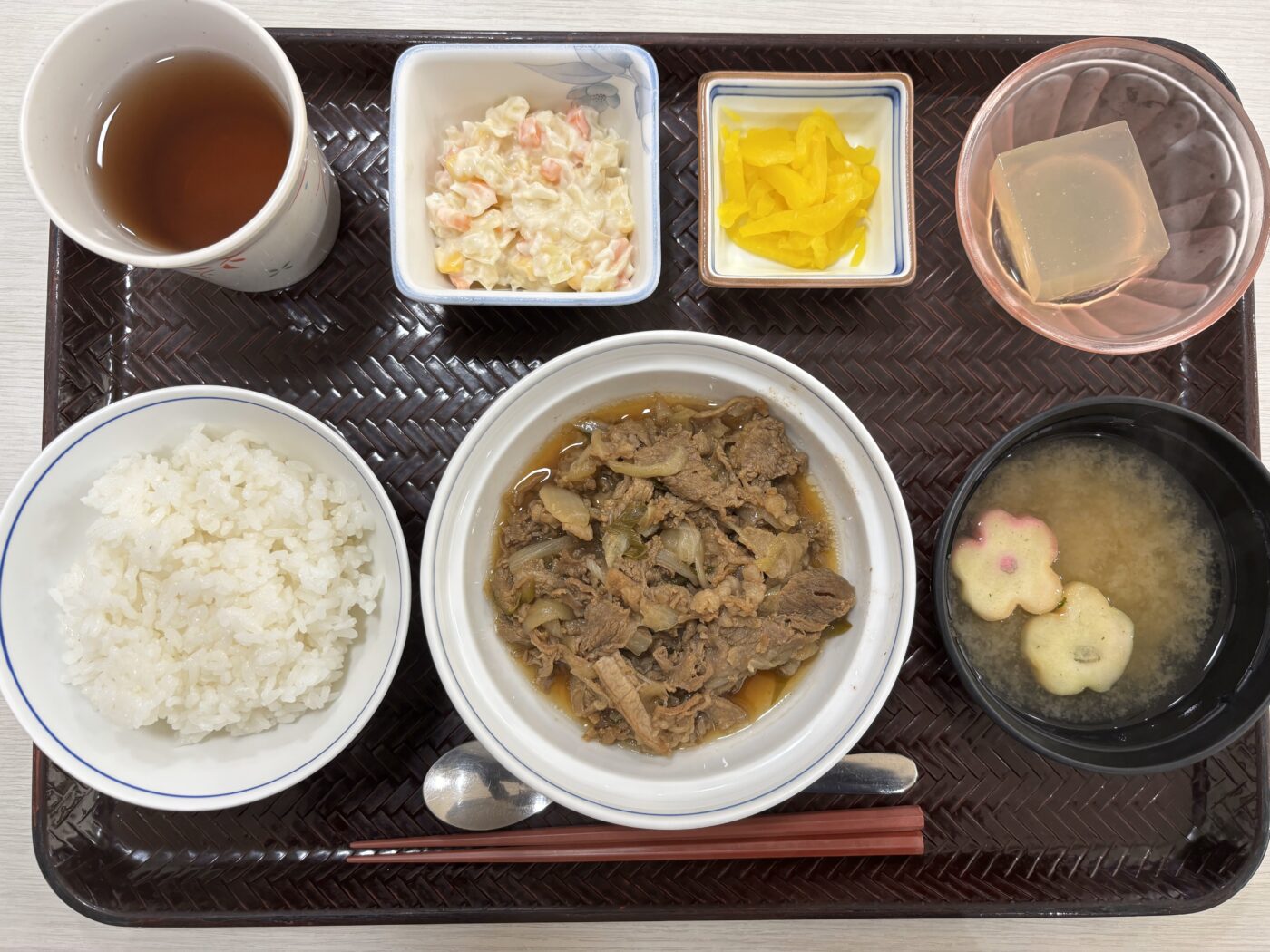 こんにちは!管理栄養士です! 6月15日の昼食は、父の日の特別メニューを提供しました! ~おしながき〜〇ご飯 〇牛皿 〇コールスローサラダ 〇味噌汁 〇はちみつ生姜寒天 スタミナたっぷりの献立、皆様に喜んでいただけました!梅雨入りしたのもつか...