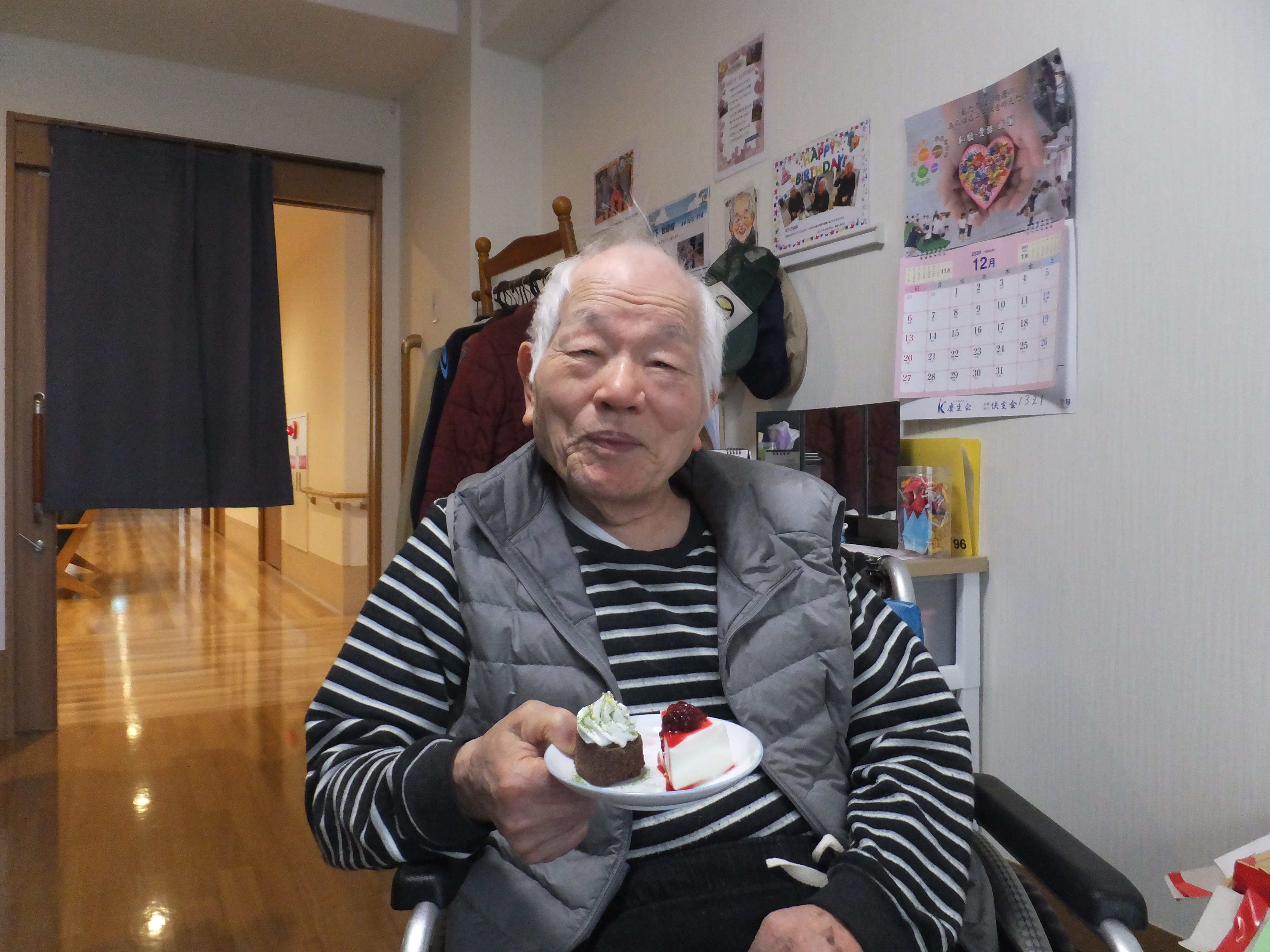 12月22日クリスマスケーキのデコレーションをして食べました。 皆様、いい顔をして食べていたので、見て下さい。    118.JPG ←いい顔でしょ!! 131.JPG →甘い物とか好きです!! 126.JPG →ケーキ好物! 127.JPG ↓食べ物ならなんでも!! 107.JPG