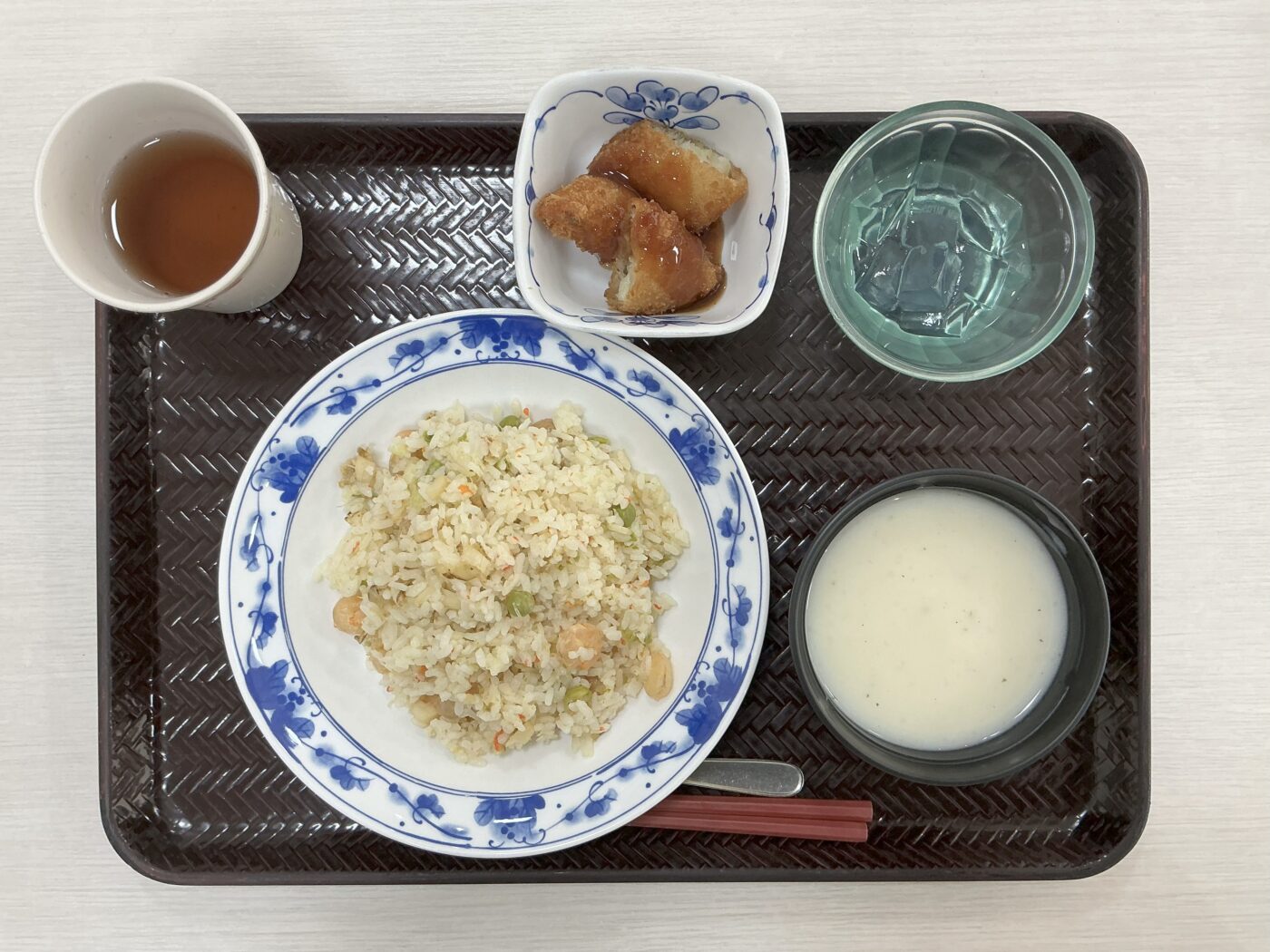 ●シーフードピラフ ●白身魚のフライ ●ポタージュスープ ●サイダーゼリー