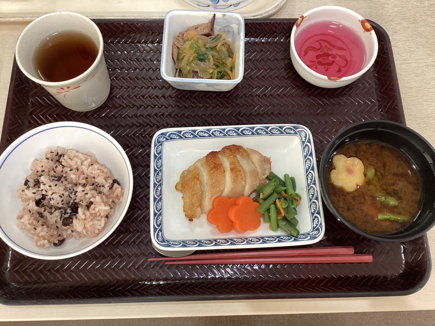 こんにちは!!管理栄養士です(^o^) 4月29日は、昼食時に昭和の日の特別メニューを提供いたしました!! 〜おしながき〜 ・赤飯 ・鶏肉の塩こうじ焼き ・鰹のタタキ ・お麩の赤出汁 ・ぶどうゼリー めずらしいお赤飯の登場に、「嬉しいわ」と喜んで下... -