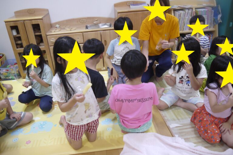 「お泊り保育②」 2025 6/30 スタッフブログ 慶生会上町みどり保育園 2025年6月30日シャワーを浴びたあとは・・・アイスキャンディーを食べてほっこりの子どもたちです。このあとは・・・お母さん、お父さんからの手紙を読んでもらい、嬉しそうにじっーと聞いていました。夜、寝るのはドキドキするけれど、みんな一緒に布団に入りスヤスヤと眠りにつきました。朝は、「おなかすいた~」と朝食をモリモリと食べ、楽しい日をお友だち・先生と一緒に過ごしました。 スタッフブログ 慶生会上町みどり保育園
