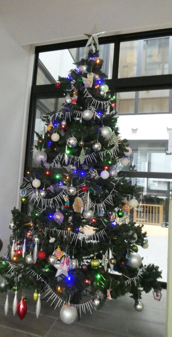 「クリスマスツリー点灯」 2025 12/04 スタッフブログ 慶生会上町みどり保育園 2025年12月4日にじぐみ(5歳児)の子どもたちがクリスマスツリーの飾りつけをしてくれました。「どこがいいかな?」「上の方がいい!」など言いながら自分で飾る場所を探しながら飾り付けてくれました。みんなで一緒にツリー点灯「5・4・3・・・」とカウントダウンピカピカと電飾が輝くと「きれい~!!」と子どもたちから喜びの声が聞こえてきました。クリスマスの日が待ちきれません。 スタッフブログ 慶生会上町みどり保育園