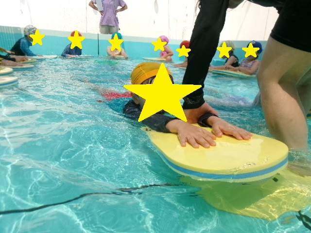 ワニ泳ぎをしたりビード板を手に泳いで、今年初めてのプールを楽しみました。