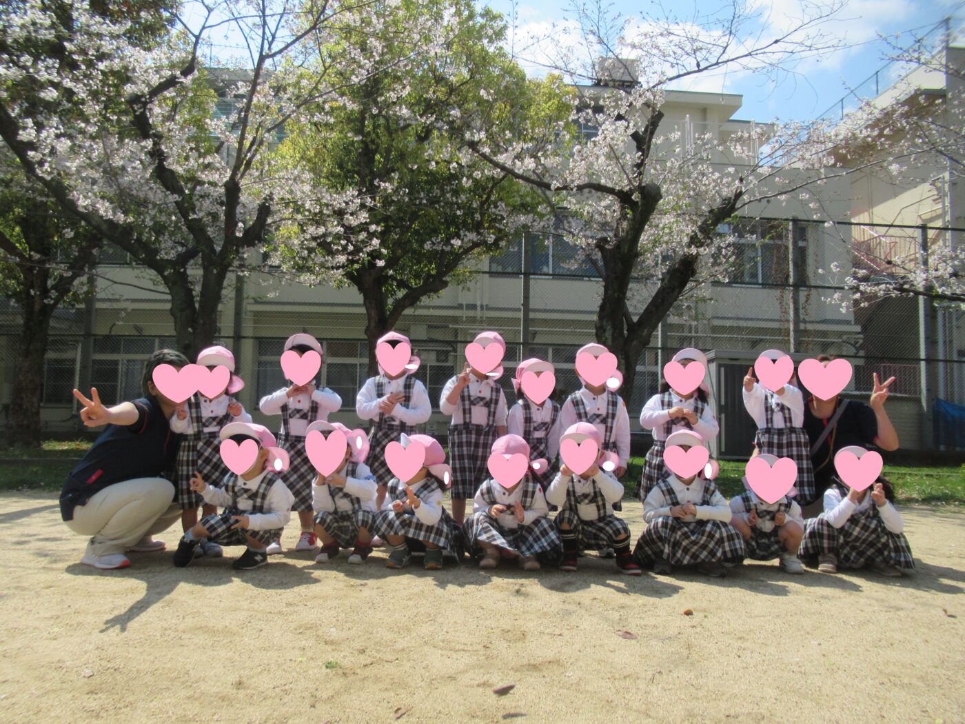 桜の木の下で記念写真を撮ってきました。