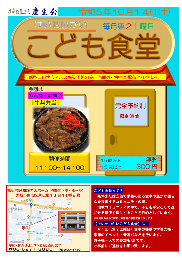 慶生会こども食堂(大阪市東成区) 第1回 10/14(土) 開催!