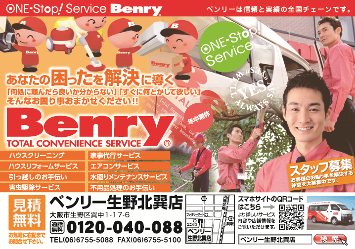 時下ますますご清栄のことお慶び申し上げます。 このたび弊社では地域により密着かつ充実したサービスをご提供するため 大阪市生野区に「ベンリー生野北巽店」を開設する運びとなりました。 2016年3月1日より営業を開始いたします。 よろしくご愛顧... -